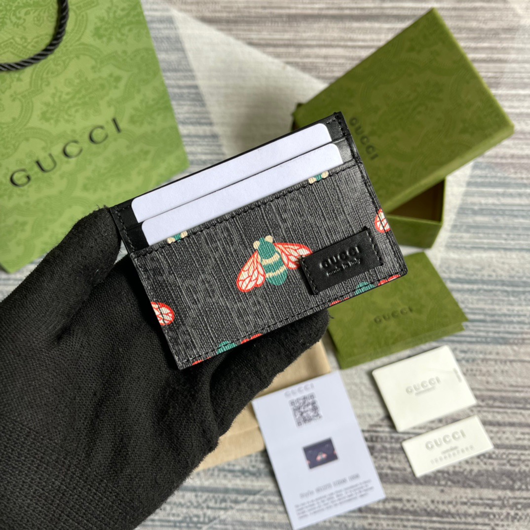 Gvc*1 Animalier Card Case Black with Metal Bee For Men 4in/10cm GG 523685 DJ20T 1000