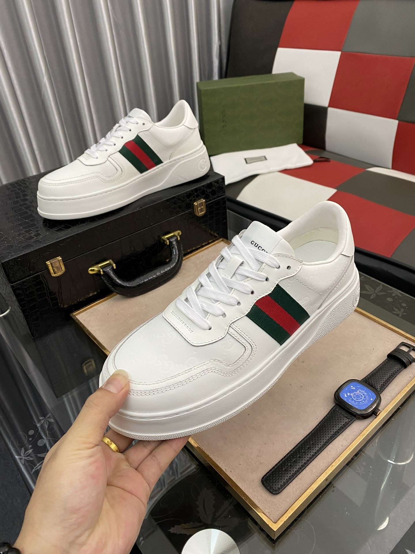 Gvc*1 Men’s GG Sneaker With Web White For Men 669582