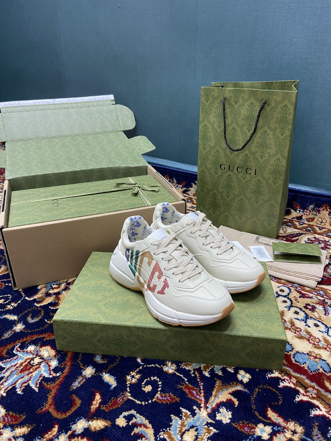 Gvc*1 Men’s Rhyton Sneakers With Mouth Print White Ivory For Men 552089 A9L00 9522