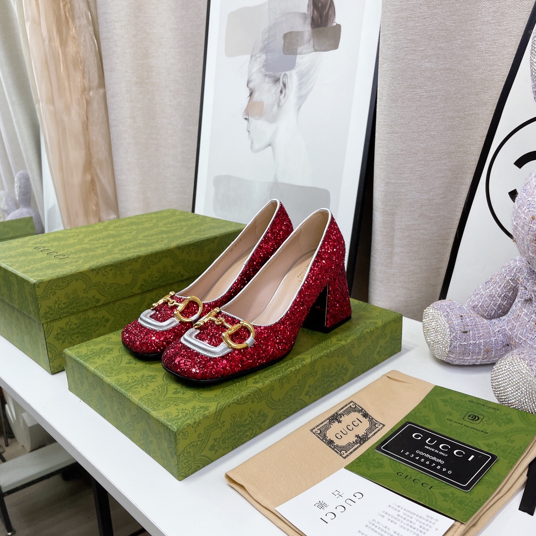 Gvc*1 Lovelight Mid-Heel Crystal Ballet Flat With Horsebit Red For Women GG