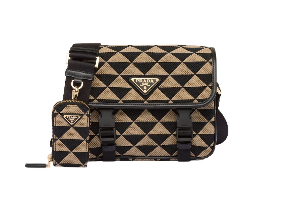 Pra*a Symbole Embroidered Fabric Bag In Beige For Women 8.6 in/ 22 cm 2VD034_2FKL_F0Y30_V_XOP